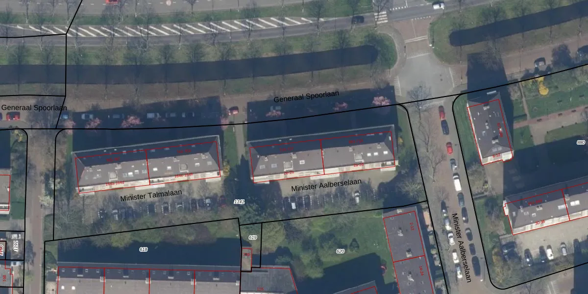 Generaal Spoorlaan 737 is gelegen op kadastraal perceel RWK01C1141. Deze kadastrale aanduiding is uniek en wordt gebruikt door het Kadaster om eigendomsrechten en andere zakelijke rechten vast te leggen. Het perceel maakt onderdeel uit van de kadastrale gemeente Rijswijk.