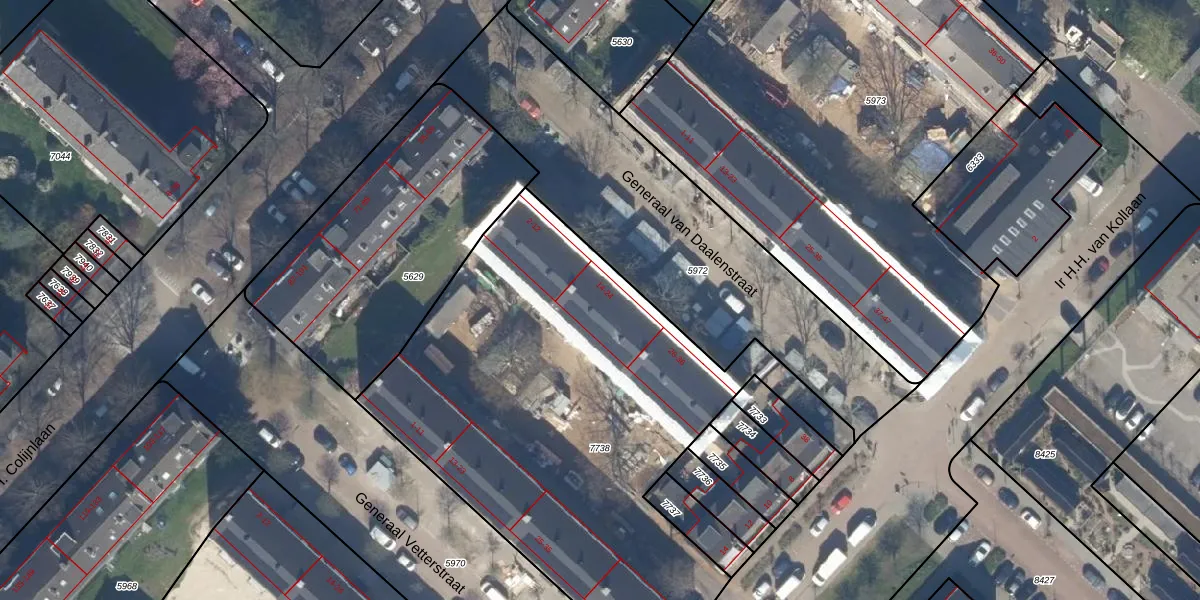 Het perceel waarop Generaal van Daalenstraat 16 staat heeft een oppervlakte van 2716 m². Dit is een zeer groot perceel. De perceeloppervlakte wordt geregistreerd door het Kadaster. Gedetailleerde informatie over de maten van dit perceel kunt u vinden in het rapport Kadastrale kaart met maatvoering van Generaal van Daalenstraat 16.