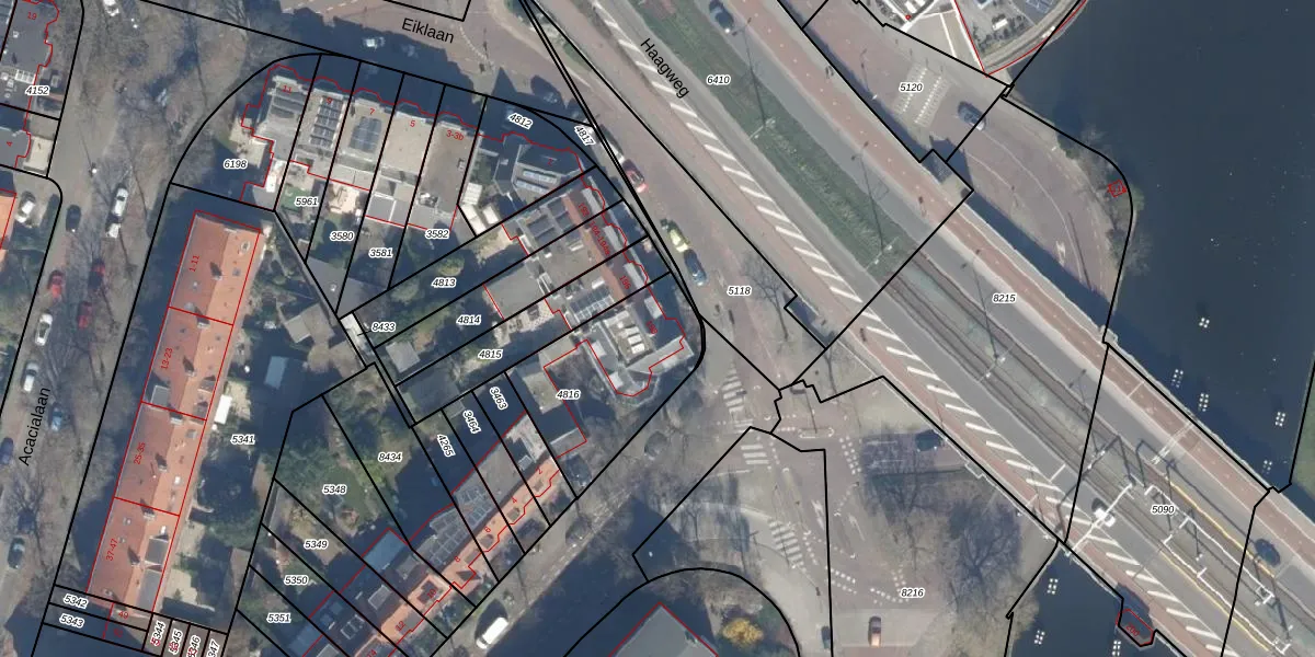 Gebruik de zoekbalk of klik op een perceel voor informatie over de adressen binnen dit perceel.