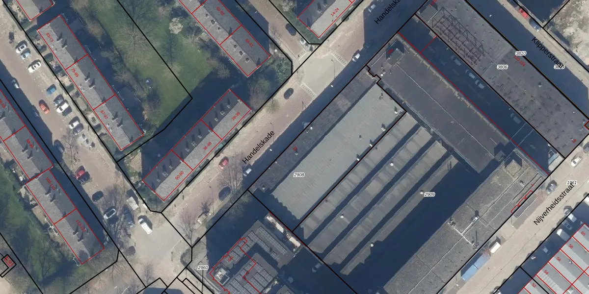 Handelskade 39 is gelegen op kadastraal perceel RWK01G2908. Deze kadastrale aanduiding is uniek en wordt gebruikt door het Kadaster om eigendomsrechten en andere zakelijke rechten vast te leggen. Het perceel maakt onderdeel uit van de kadastrale gemeente Rijswijk.