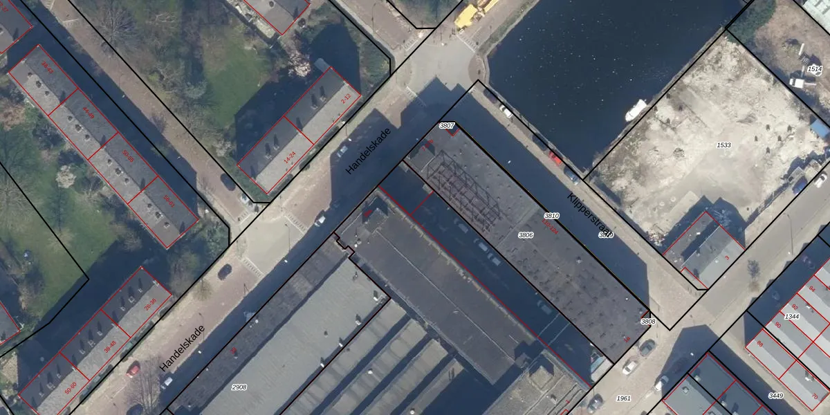 Het perceel waarop Handelskade 43 staat heeft een oppervlakte van 4655 m². Dit is een zeer groot perceel. De perceeloppervlakte wordt geregistreerd door het Kadaster. Gedetailleerde informatie over de maten van dit perceel kunt u vinden in het rapport Kadastrale kaart met maatvoering van Handelskade 43.
