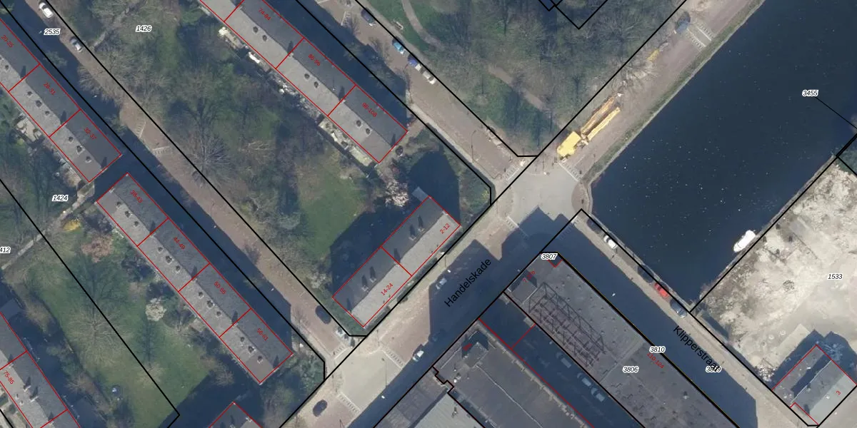 Het perceel waarop Handelskade 6 staat heeft een oppervlakte van 7390 m². Dit is een zeer groot perceel. De perceeloppervlakte wordt geregistreerd door het Kadaster. Gedetailleerde informatie over de maten van dit perceel kunt u vinden in het rapport Kadastrale kaart met maatvoering van Handelskade 6.