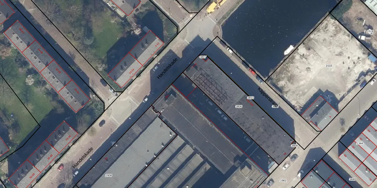 Het perceel waarop Handelskade 67 staat heeft een oppervlakte van 4655 m². Dit is een zeer groot perceel. De perceeloppervlakte wordt geregistreerd door het Kadaster. Gedetailleerde informatie over de maten van dit perceel kunt u vinden in het rapport Kadastrale kaart met maatvoering van Handelskade 67.