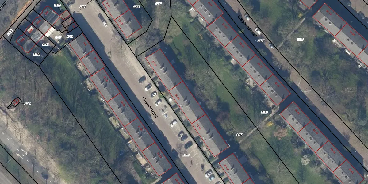Het perceel waarop Havenstraat 43 staat heeft een oppervlakte van 3865 m². Dit is een zeer groot perceel. De perceeloppervlakte wordt geregistreerd door het Kadaster. Gedetailleerde informatie over de maten van dit perceel kunt u vinden in het rapport Kadastrale kaart met maatvoering van Havenstraat 43.