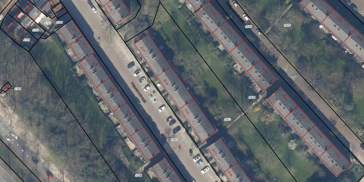 Havenstraat 45 is gelegen op kadastraal perceel RWK01G1412. Deze kadastrale aanduiding is uniek en wordt gebruikt door het Kadaster om eigendomsrechten en andere zakelijke rechten vast te leggen. Het perceel maakt onderdeel uit van de kadastrale gemeente Rijswijk.