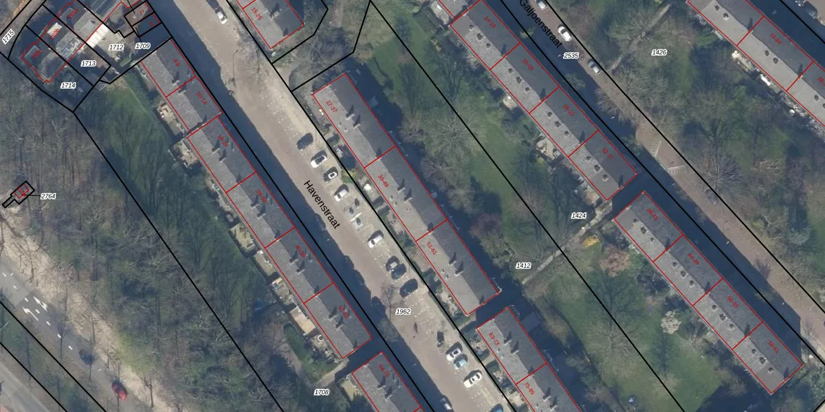 Het perceel waarop Havenstraat 47 staat heeft een oppervlakte van 3865 m². Dit is een zeer groot perceel. De perceeloppervlakte wordt geregistreerd door het Kadaster. Gedetailleerde informatie over de maten van dit perceel kunt u vinden in het rapport Kadastrale kaart met maatvoering van Havenstraat 47.
