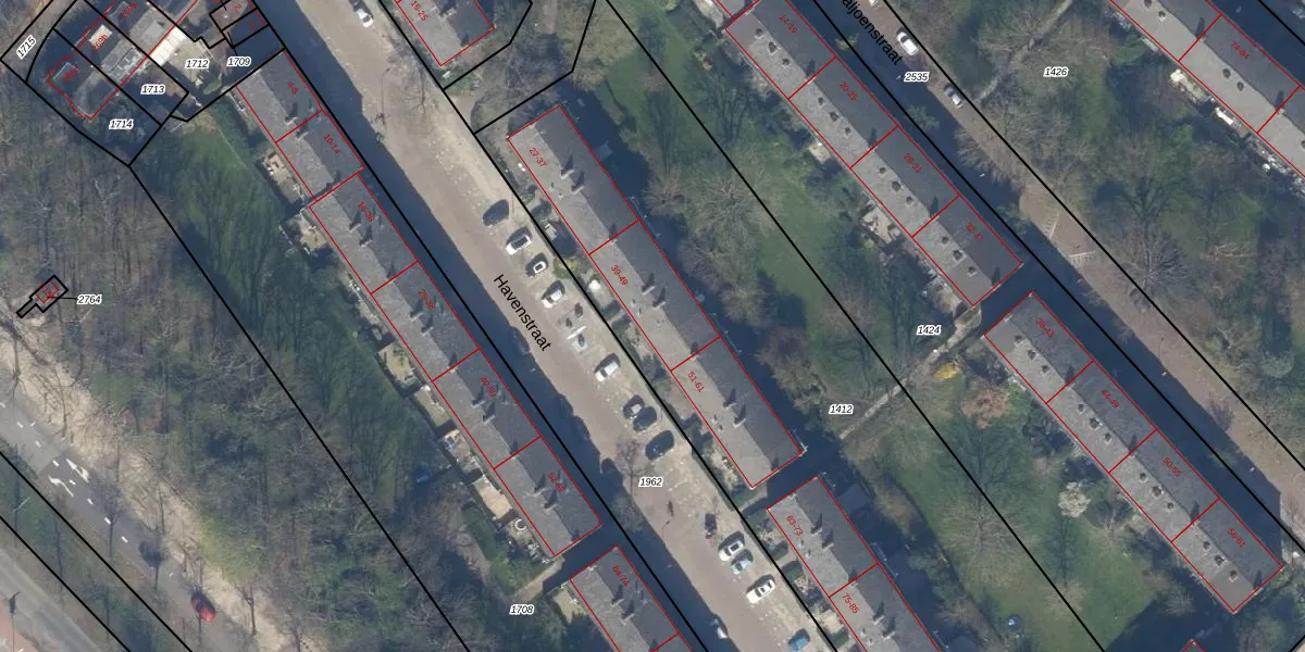 Het perceel waarop Havenstraat 49 staat heeft een oppervlakte van 3865 m². Dit is een zeer groot perceel. De perceeloppervlakte wordt geregistreerd door het Kadaster. Gedetailleerde informatie over de maten van dit perceel kunt u vinden in het rapport Kadastrale kaart met maatvoering van Havenstraat 49.