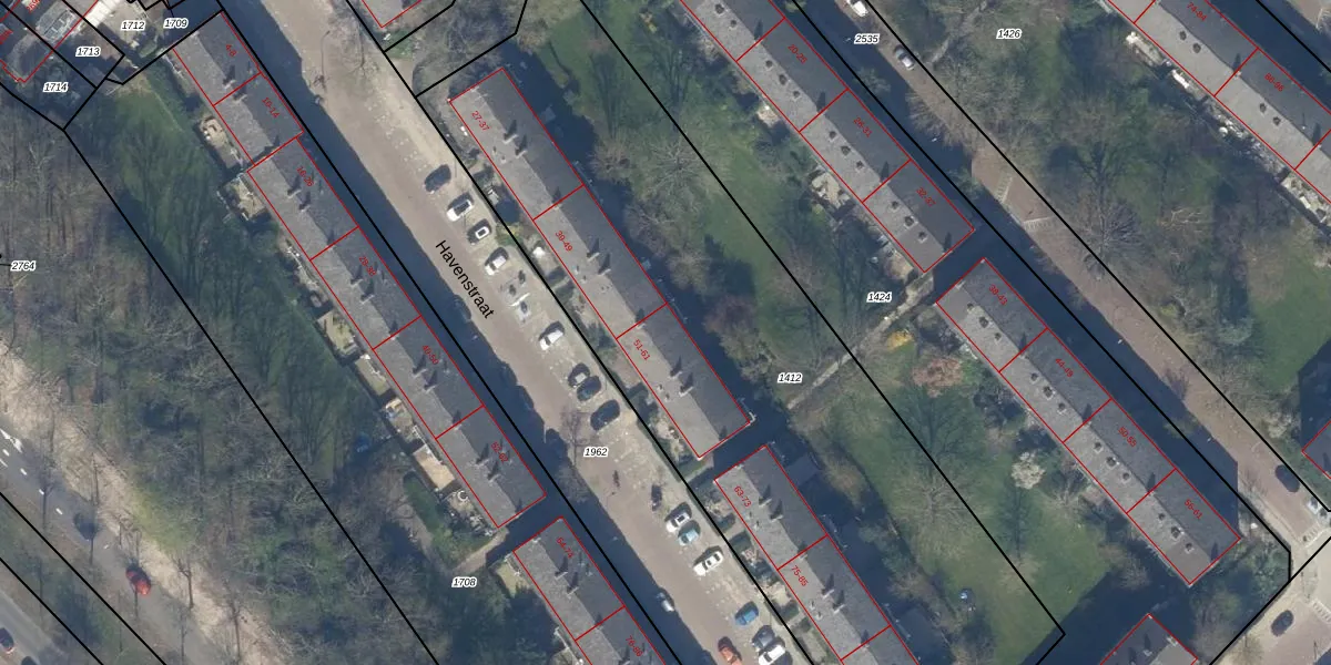 Havenstraat 55 is gelegen op kadastraal perceel RWK01G1412. Deze kadastrale aanduiding is uniek en wordt gebruikt door het Kadaster om eigendomsrechten en andere zakelijke rechten vast te leggen. Het perceel maakt onderdeel uit van de kadastrale gemeente Rijswijk.