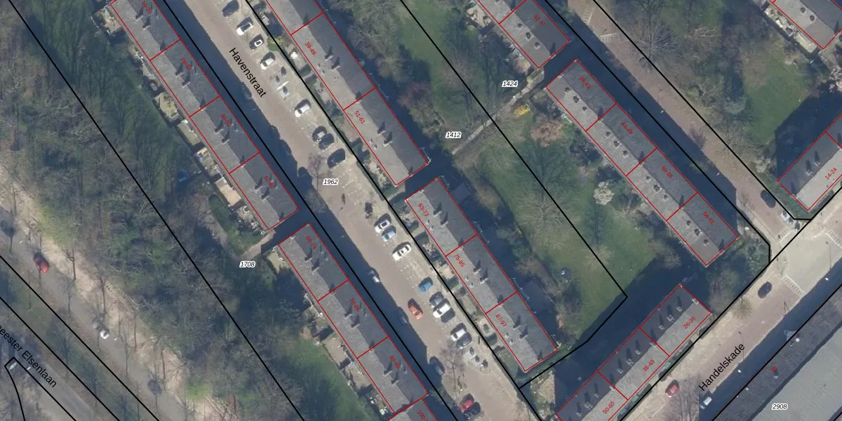 Het perceel waarop Havenstraat 63 staat heeft een oppervlakte van 3865 m². Dit is een zeer groot perceel. De perceeloppervlakte wordt geregistreerd door het Kadaster. Gedetailleerde informatie over de maten van dit perceel kunt u vinden in het rapport Kadastrale kaart met maatvoering van Havenstraat 63.