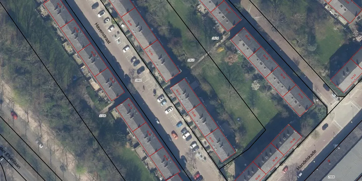 Het perceel waarop Havenstraat 65 staat heeft een oppervlakte van 3865 m². Dit is een zeer groot perceel. De perceeloppervlakte wordt geregistreerd door het Kadaster. Gedetailleerde informatie over de maten van dit perceel kunt u vinden in het rapport Kadastrale kaart met maatvoering van Havenstraat 65.