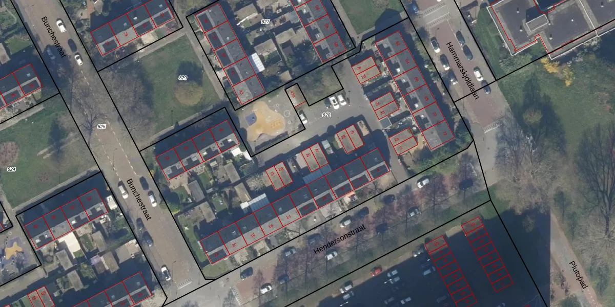 Het perceel waarop Hendersonstraat 2-h staat heeft een oppervlakte van 4124 m². Dit is een zeer groot perceel. De perceeloppervlakte wordt geregistreerd door het Kadaster. Gedetailleerde informatie over de maten van dit perceel kunt u vinden in het rapport Kadastrale kaart met maatvoering van Hendersonstraat 2-h.