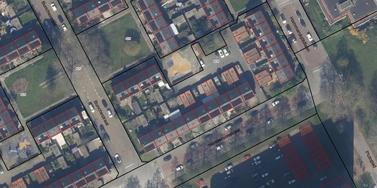 Het perceel waarop Hendersonstraat 2-g staat heeft een oppervlakte van 4124 m². Dit is een zeer groot perceel. De perceeloppervlakte wordt geregistreerd door het Kadaster. Gedetailleerde informatie over de maten van dit perceel kunt u vinden in het rapport Kadastrale kaart met maatvoering van Hendersonstraat 2-g.