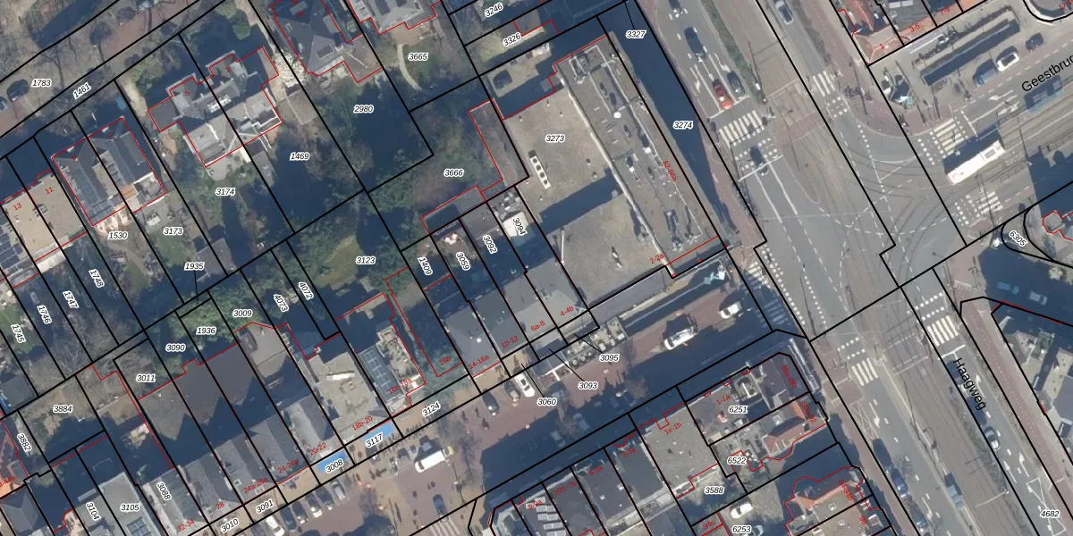 Het adres ligt op het perceel RWK01-A-3094, dat zich in de kadastrale gemeente Rijswijk bevindt. Het perceel is kleiner dan gemiddeld in Rijswijk. Het perceel is 171 m² groot, terwijl het gemiddelde ligt op 1114,17 m². Het grootste perceel in de kadastrale gemeente is 44,3 ha. Het kleinste perceel heeft een oppervlakte van 0 m². Er zijn 3 adressen aanwezig op het perceel. De laatste wijziging in het de Basisregistratie Kadaster (BRK) was op 25-02-2003.