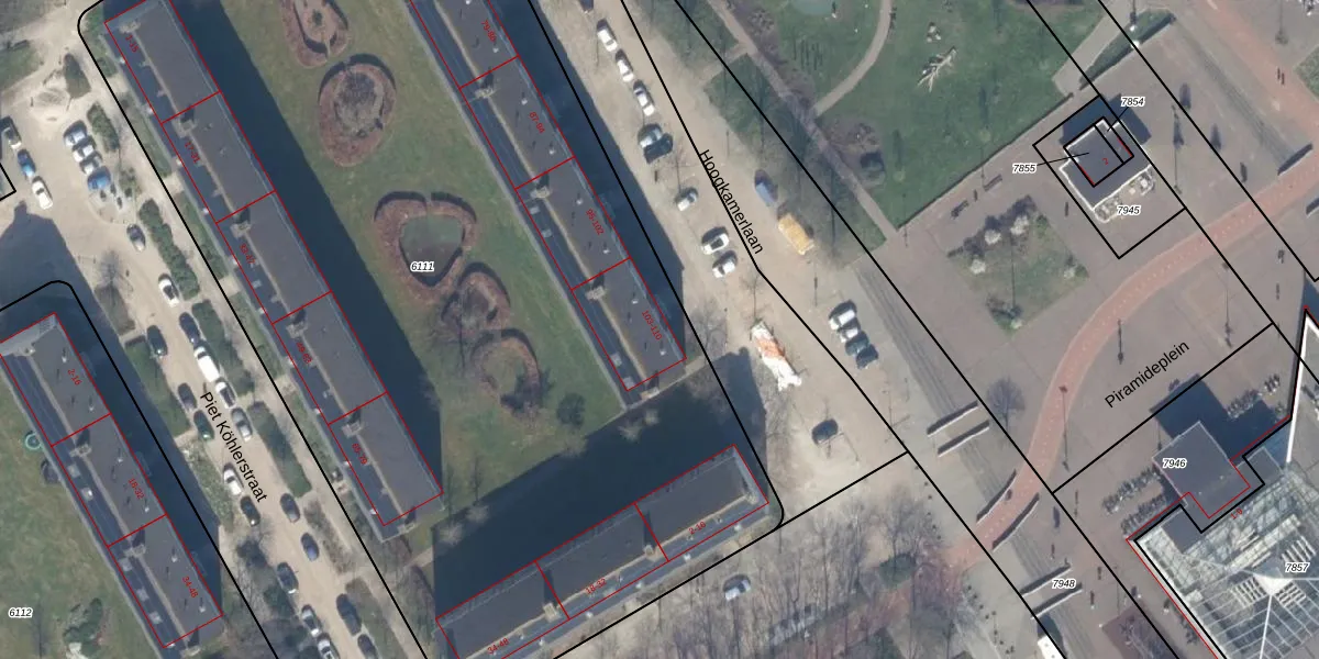 Het adres ligt op het perceel RWK01-D-6111, dat zich in de kadastrale gemeente Rijswijk bevindt. De oppervlakte van het perceel is 7560 m². Dat is groter dan gemiddeld in Rijswijk, waar de gemiddelde perceeloppervlakte op 1114,17 m² ligt. Het grootste perceel in de kadastrale gemeente is 44,3 ha. Het kleinste perceel heeft een oppervlakte van 0 m². Op het perceel liggen in totaal 104 adressen. De huidige grenzen van het perceel zijn digitaal in de Basisregistratie Kadaster (BRK) geregistreerd op 21-02-2003.