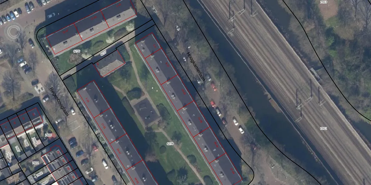 Hoogkamerlaan 13 is gelegen op kadastraal perceel RWK01D6278. Deze kadastrale aanduiding is uniek en wordt gebruikt door het Kadaster om eigendomsrechten en andere zakelijke rechten vast te leggen. Het perceel maakt onderdeel uit van de kadastrale gemeente Rijswijk.