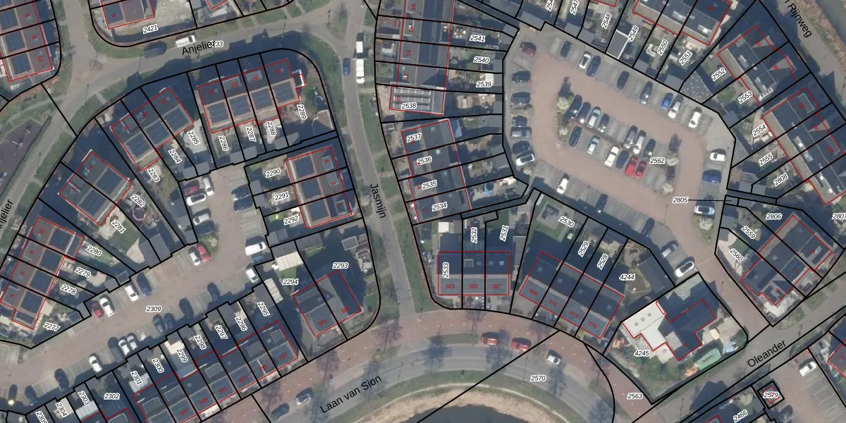 Gebruik de zoekbalk of klik op een perceel voor informatie over de adressen binnen dit perceel.