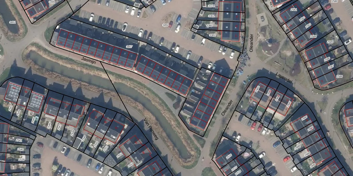 Het perceel waarop Jasmijn 50 staat heeft een oppervlakte van 2145 m². Dit is een zeer groot perceel. De perceeloppervlakte wordt geregistreerd door het Kadaster. Gedetailleerde informatie over de maten van dit perceel kunt u vinden in het rapport Kadastrale kaart met maatvoering van Jasmijn 50.