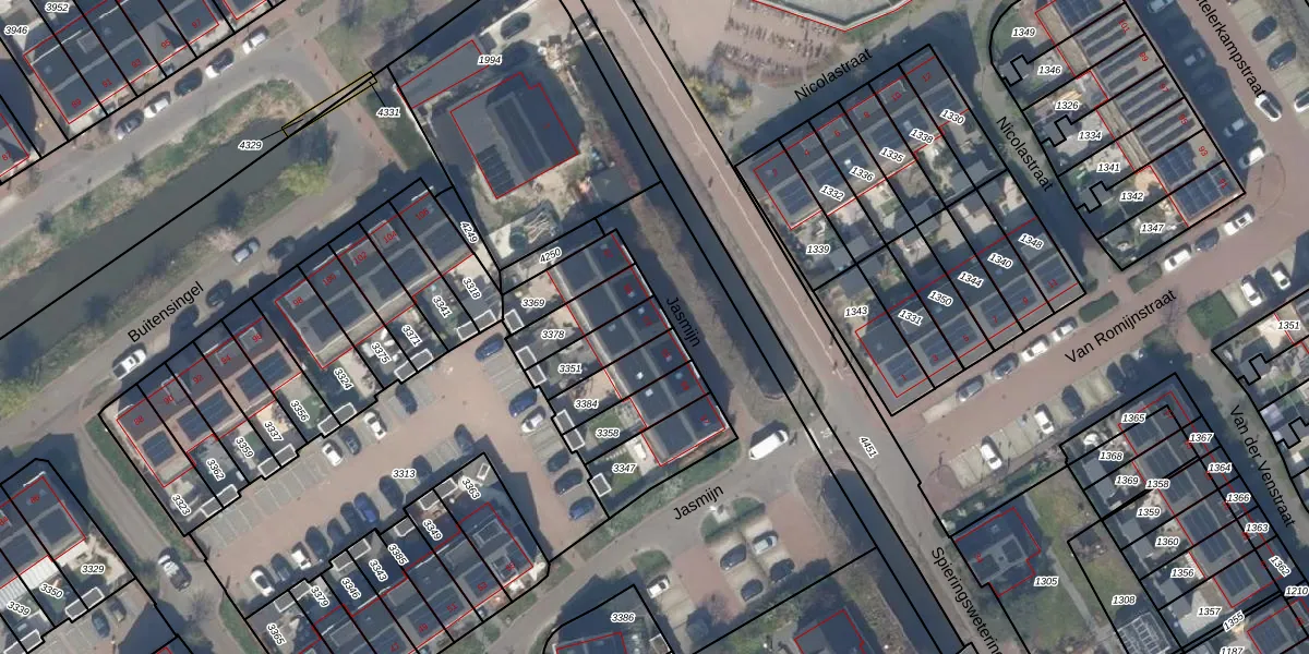 Het perceel waarop Jasmijn 63 staat heeft een oppervlakte van 129 m². Dit is een middelgroot perceel. De perceeloppervlakte wordt geregistreerd door het Kadaster. Gedetailleerde informatie over de maten van dit perceel kunt u vinden in het rapport Kadastrale kaart met maatvoering van Jasmijn 63.