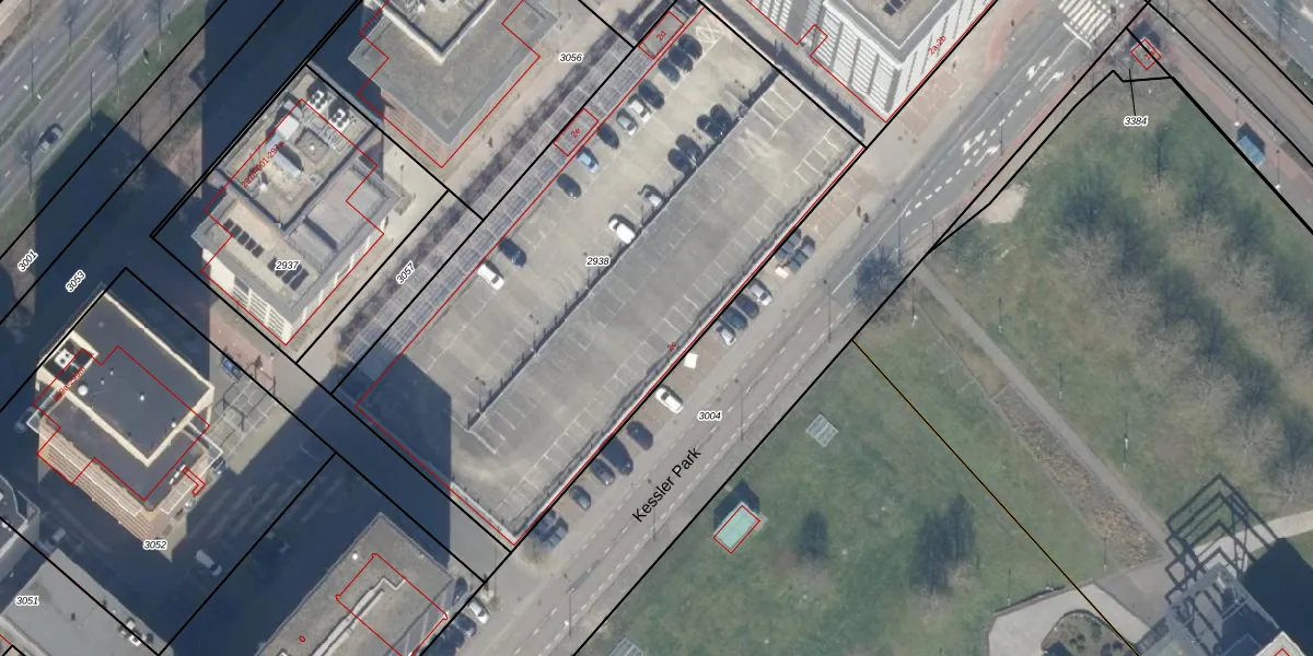 Het perceel waarop Kessler Park 2-c staat heeft een oppervlakte van 3003 m². Dit is een zeer groot perceel. De perceeloppervlakte wordt geregistreerd door het Kadaster. Gedetailleerde informatie over de maten van dit perceel kunt u vinden in het rapport Kadastrale kaart met maatvoering van Kessler Park 2-c.