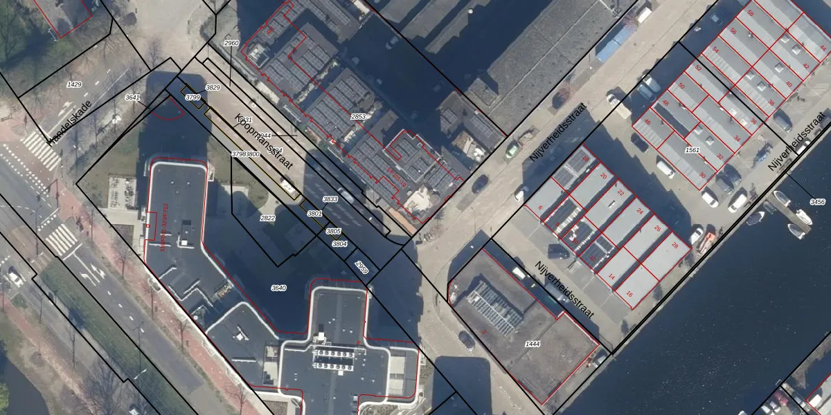Het perceel waarop Koopmansstraat 1-g staat heeft een oppervlakte van 2378 m². Dit is een zeer groot perceel. De perceeloppervlakte wordt geregistreerd door het Kadaster. Gedetailleerde informatie over de maten van dit perceel kunt u vinden in het rapport Kadastrale kaart met maatvoering van Koopmansstraat 1-g.