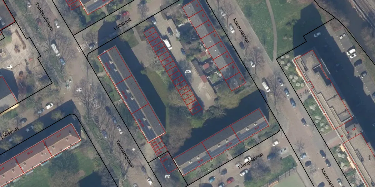 Het perceel waarop Luitstraat 1-n staat heeft een oppervlakte van 5947 m². Dit is een zeer groot perceel. De perceeloppervlakte wordt geregistreerd door het Kadaster. Gedetailleerde informatie over de maten van dit perceel kunt u vinden in het rapport Kadastrale kaart met maatvoering van Luitstraat 1-n.
