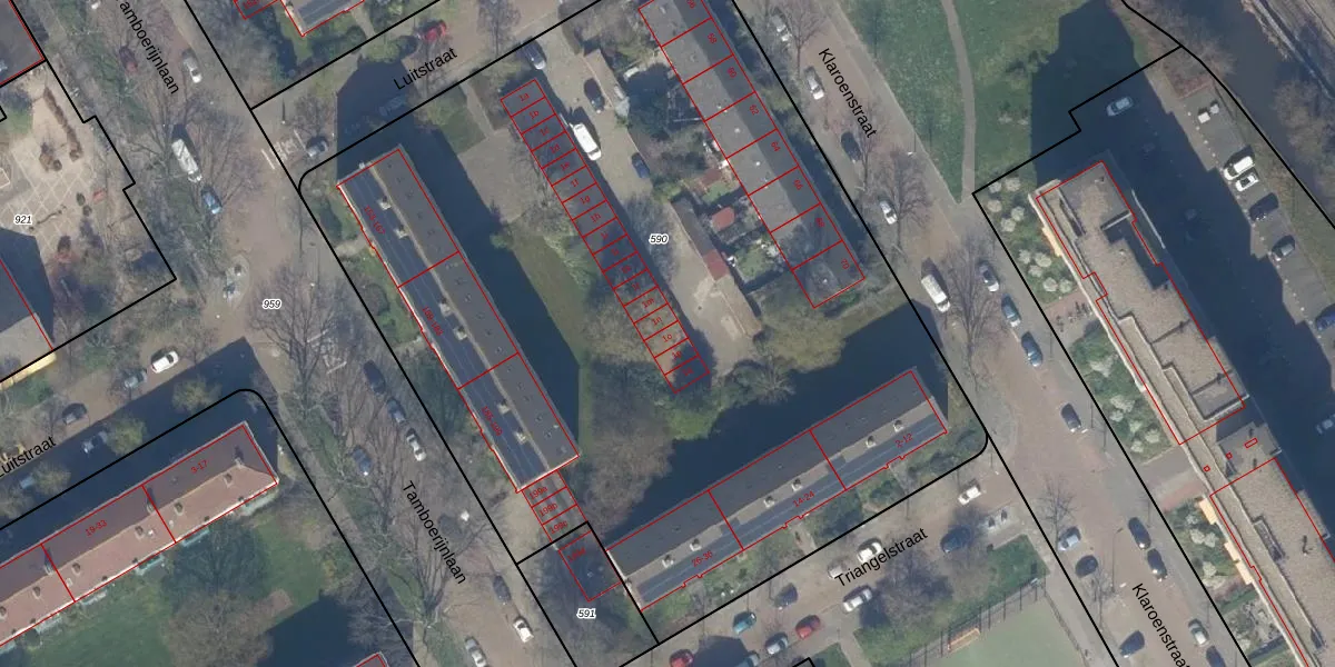 Het perceel waarop Luitstraat 1-o staat heeft een oppervlakte van 5947 m². Dit is een zeer groot perceel. De perceeloppervlakte wordt geregistreerd door het Kadaster. Gedetailleerde informatie over de maten van dit perceel kunt u vinden in het rapport Kadastrale kaart met maatvoering van Luitstraat 1-o.