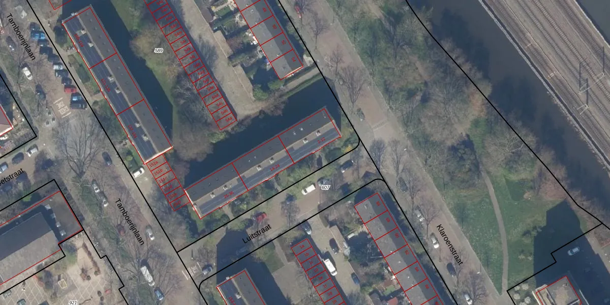 Het perceel waarop Luitstraat 12 staat heeft een oppervlakte van 8385 m². Dit is een zeer groot perceel. De perceeloppervlakte wordt geregistreerd door het Kadaster. Gedetailleerde informatie over de maten van dit perceel kunt u vinden in het rapport Kadastrale kaart met maatvoering van Luitstraat 12.