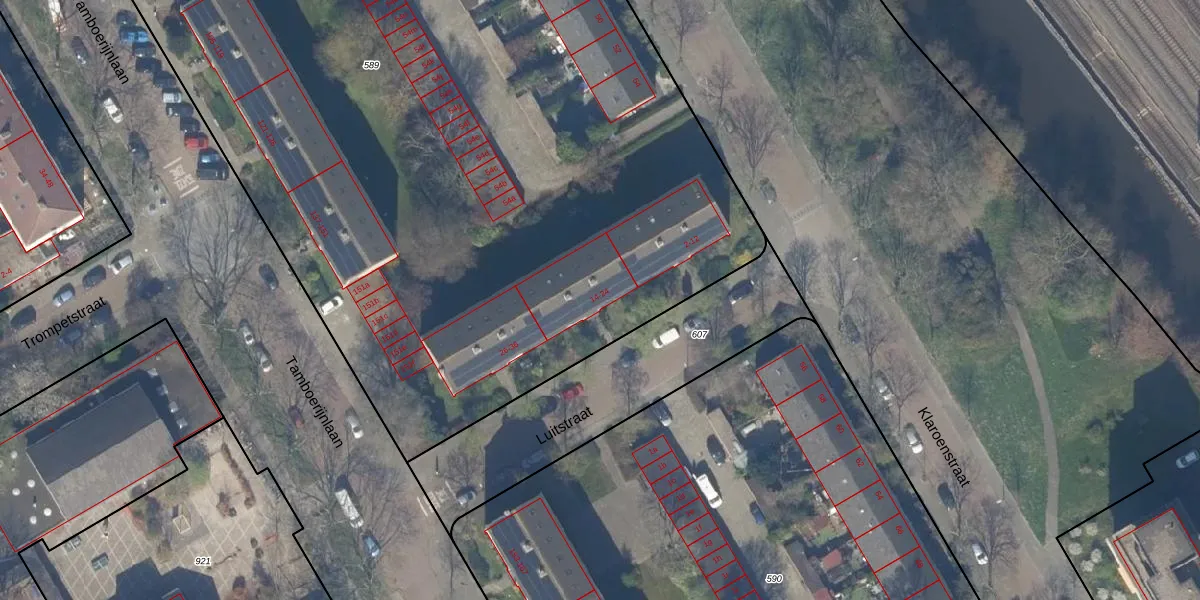 Het perceel waarop Luitstraat 14 staat heeft een oppervlakte van 8385 m². Dit is een zeer groot perceel. De perceeloppervlakte wordt geregistreerd door het Kadaster. Gedetailleerde informatie over de maten van dit perceel kunt u vinden in het rapport Kadastrale kaart met maatvoering van Luitstraat 14.