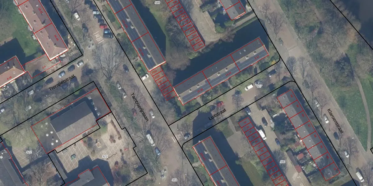 Het perceel waarop Luitstraat 34 staat heeft een oppervlakte van 8385 m². Dit is een zeer groot perceel. De perceeloppervlakte wordt geregistreerd door het Kadaster. Gedetailleerde informatie over de maten van dit perceel kunt u vinden in het rapport Kadastrale kaart met maatvoering van Luitstraat 34.