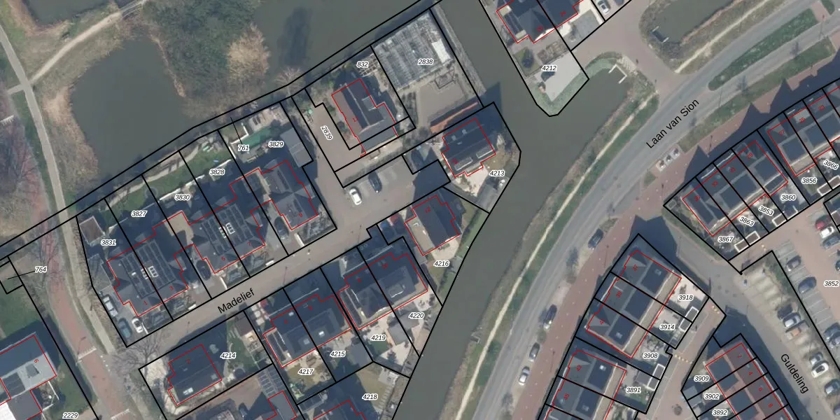 Het perceel waarop Madelief 12 staat heeft een oppervlakte van 353 m². Dit is een groot perceel. De perceeloppervlakte wordt geregistreerd door het Kadaster. Gedetailleerde informatie over de maten van dit perceel kunt u vinden in het rapport Kadastrale kaart met maatvoering van Madelief 12.