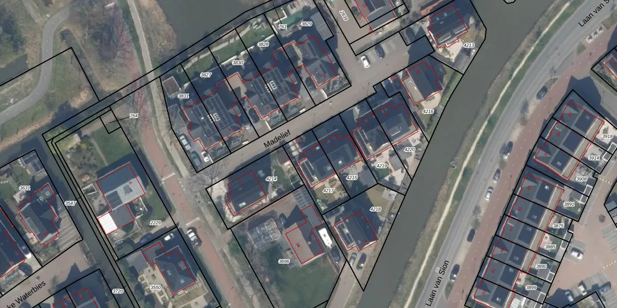 Het perceel waarop Madelief 4 staat heeft een oppervlakte van 280 m². Dit is een middelgroot perceel. De perceeloppervlakte wordt geregistreerd door het Kadaster. Gedetailleerde informatie over de maten van dit perceel kunt u vinden in het rapport Kadastrale kaart met maatvoering van Madelief 4.