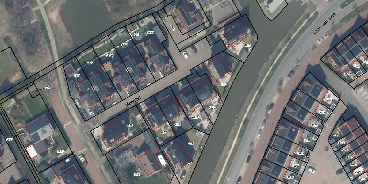 Het perceel waarop Madelief 8 staat heeft een oppervlakte van 310 m². Dit is een groot perceel. De perceeloppervlakte wordt geregistreerd door het Kadaster. Gedetailleerde informatie over de maten van dit perceel kunt u vinden in het rapport Kadastrale kaart met maatvoering van Madelief 8.