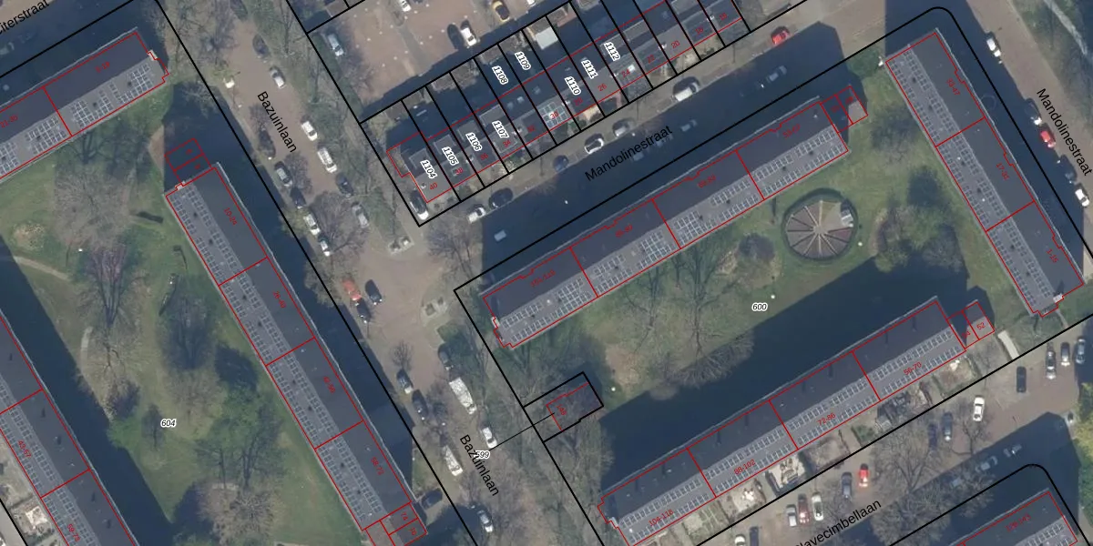Mandolinestraat 113 is gelegen op kadastraal perceel RWK01H600. Deze kadastrale aanduiding is uniek en wordt gebruikt door het Kadaster om eigendomsrechten en andere zakelijke rechten vast te leggen. Het perceel maakt onderdeel uit van de kadastrale gemeente Rijswijk.