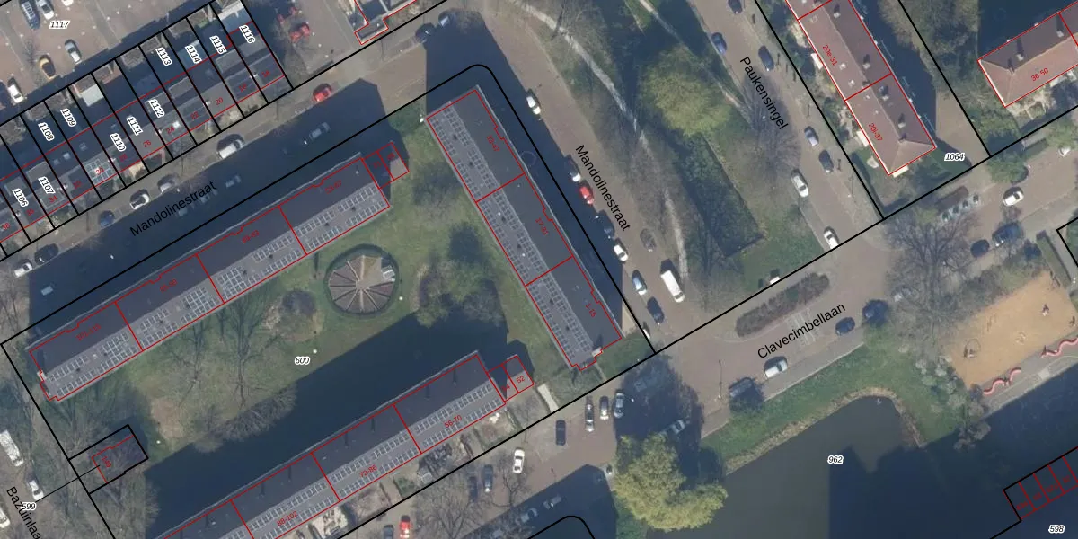 Het perceel waarop Mandolinestraat 21 staat heeft een oppervlakte van 6472 m². Dit is een zeer groot perceel. De perceeloppervlakte wordt geregistreerd door het Kadaster. Gedetailleerde informatie over de maten van dit perceel kunt u vinden in het rapport Kadastrale kaart met maatvoering van Mandolinestraat 21.