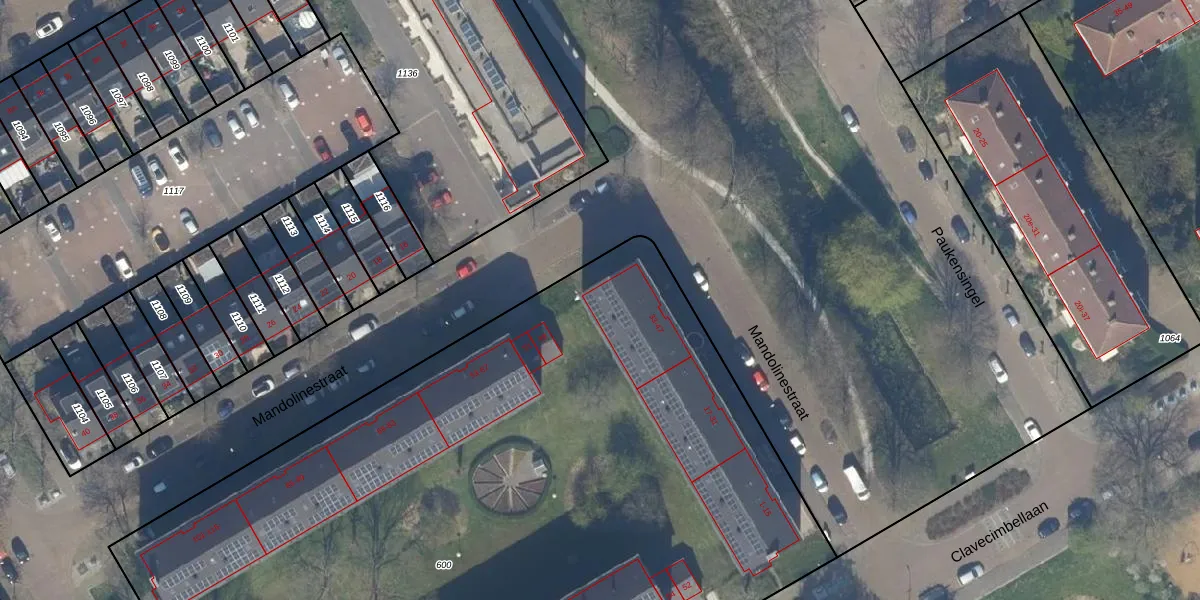 Het perceel waarop Mandolinestraat 41 staat heeft een oppervlakte van 6472 m². Dit is een zeer groot perceel. De perceeloppervlakte wordt geregistreerd door het Kadaster. Gedetailleerde informatie over de maten van dit perceel kunt u vinden in het rapport Kadastrale kaart met maatvoering van Mandolinestraat 41.