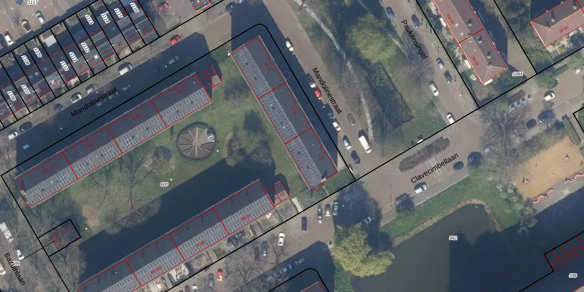 Het perceel waarop Mandolinestraat 9 staat heeft een oppervlakte van 6472 m². Dit is een zeer groot perceel. De perceeloppervlakte wordt geregistreerd door het Kadaster. Gedetailleerde informatie over de maten van dit perceel kunt u vinden in het rapport Kadastrale kaart met maatvoering van Mandolinestraat 9.