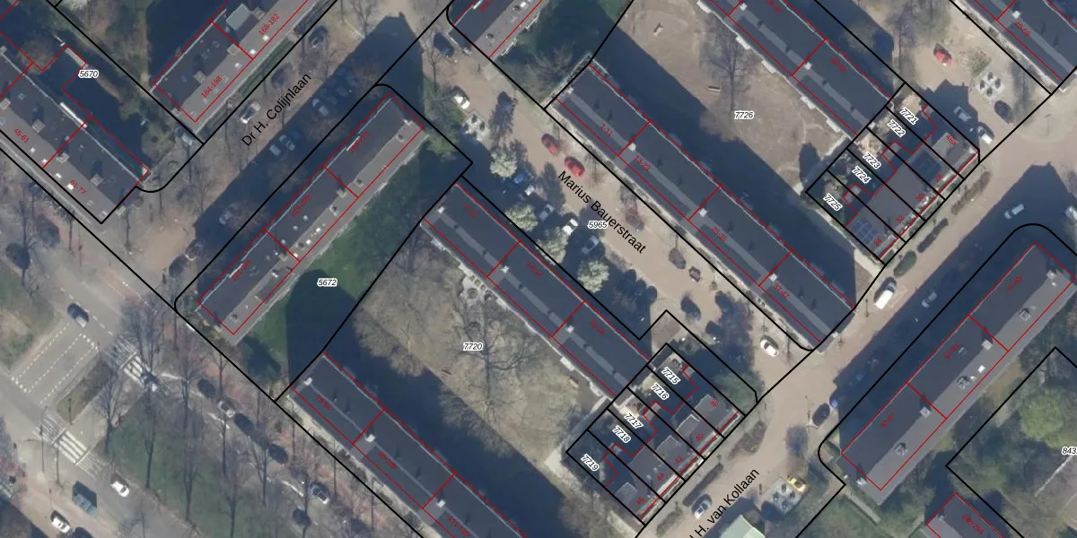 Het perceel waarop Marius Bauerstraat 14 staat heeft een oppervlakte van 3324 m². Dit is een zeer groot perceel. De perceeloppervlakte wordt geregistreerd door het Kadaster. Gedetailleerde informatie over de maten van dit perceel kunt u vinden in het rapport Kadastrale kaart met maatvoering van Marius Bauerstraat 14.