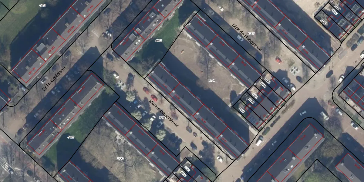 Het perceel waarop het adres ligt is RWK01-D-7726. De afkorting 'RWK01' staat voor kadastrale gemeente Rijswijk. De gemiddelde perceeloppervlakte in de kadastrale gemeente Rijswijk is 1114,17 m². Dit perceel is met zijn 2783 m² dus groter dan gemiddeld. Het kleinste perceel in de kadastrale gemeente is 0 m² groot. De grootste perceeloppervlakte is 44,3 ha. Er zijn 42 adressen aanwezig op het perceel. De huidige grenzen van het perceel zijn digitaal in de Basisregistratie Kadaster (BRK) geregistreerd op 09-04-2013.