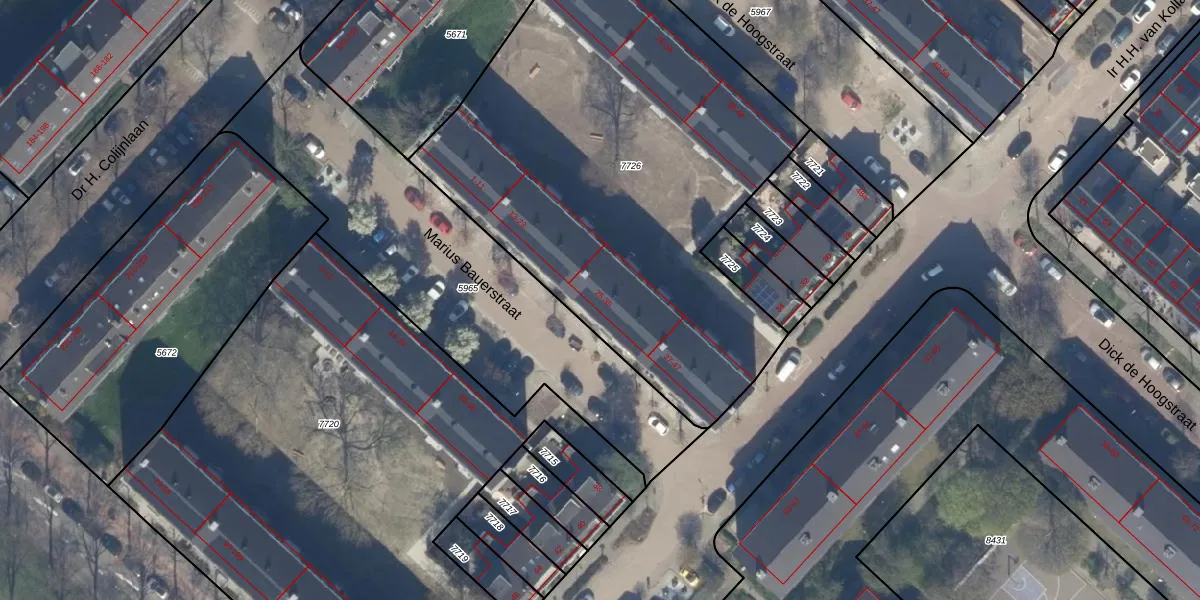 Marius Bauerstraat 25 is gelegen op kadastraal perceel RWK01D7726. Deze kadastrale aanduiding is uniek en wordt gebruikt door het Kadaster om eigendomsrechten en andere zakelijke rechten vast te leggen. Het perceel maakt onderdeel uit van de kadastrale gemeente Rijswijk.