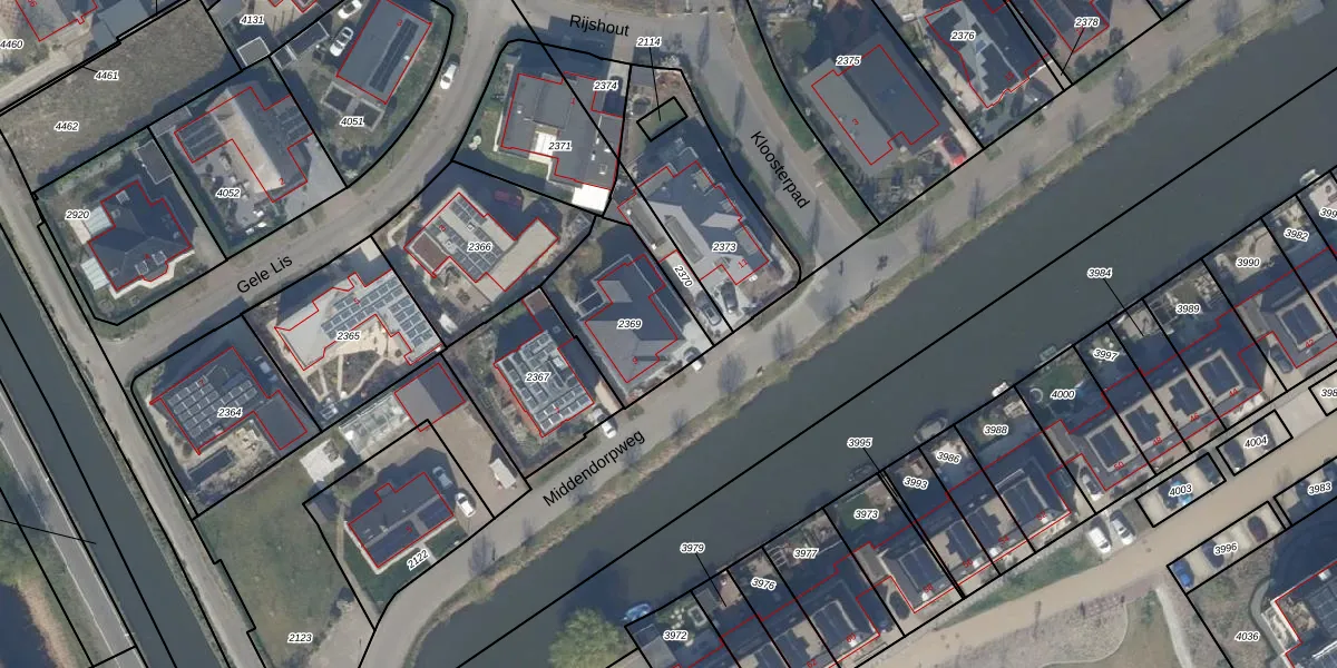 Middendorpweg 9 is gelegen op kadastraal perceel RWK01I2369. Deze kadastrale aanduiding is uniek en wordt gebruikt door het Kadaster om eigendomsrechten en andere zakelijke rechten vast te leggen. Het perceel maakt onderdeel uit van de kadastrale gemeente Rijswijk.