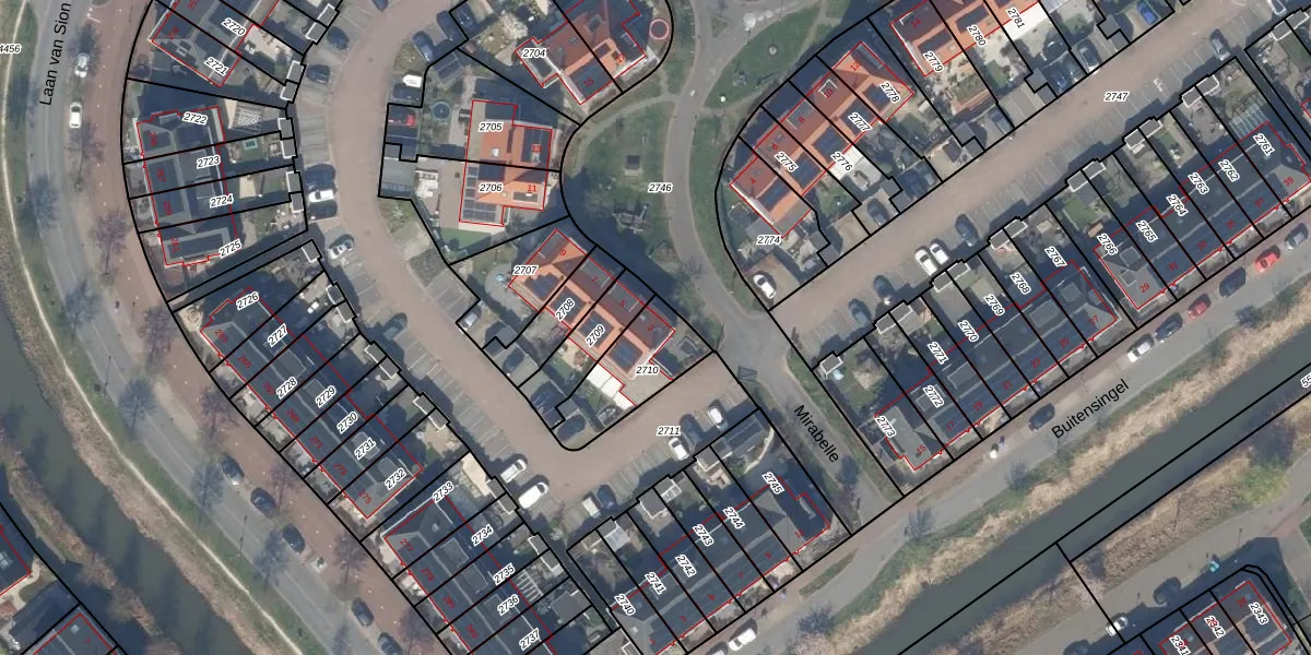 Gebruik de zoekbalk of klik op een perceel voor informatie over de adressen binnen dit perceel.