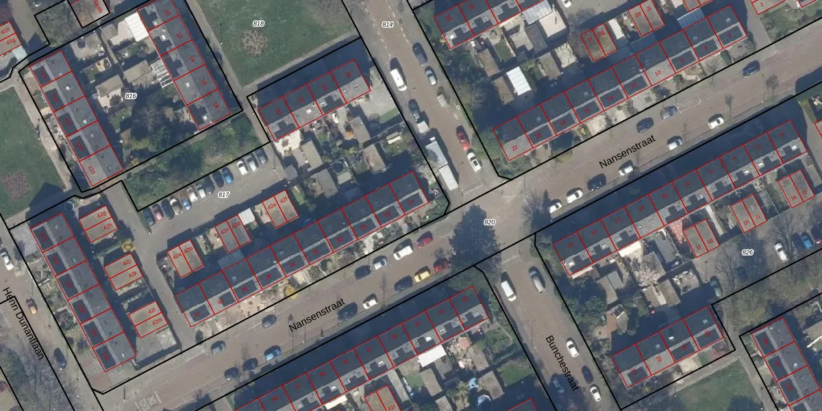 Het perceel waarop Nansenstraat 24 staat heeft een oppervlakte van 4155 m². Dit is een zeer groot perceel. De perceeloppervlakte wordt geregistreerd door het Kadaster. Gedetailleerde informatie over de maten van dit perceel kunt u vinden in het rapport Kadastrale kaart met maatvoering van Nansenstraat 24.