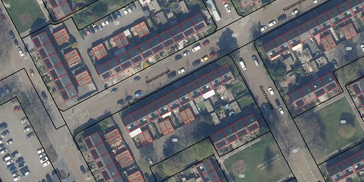 Het perceel waarop Nansenstraat 31 staat heeft een oppervlakte van 4162 m². Dit is een zeer groot perceel. De perceeloppervlakte wordt geregistreerd door het Kadaster. Gedetailleerde informatie over de maten van dit perceel kunt u vinden in het rapport Kadastrale kaart met maatvoering van Nansenstraat 31.
