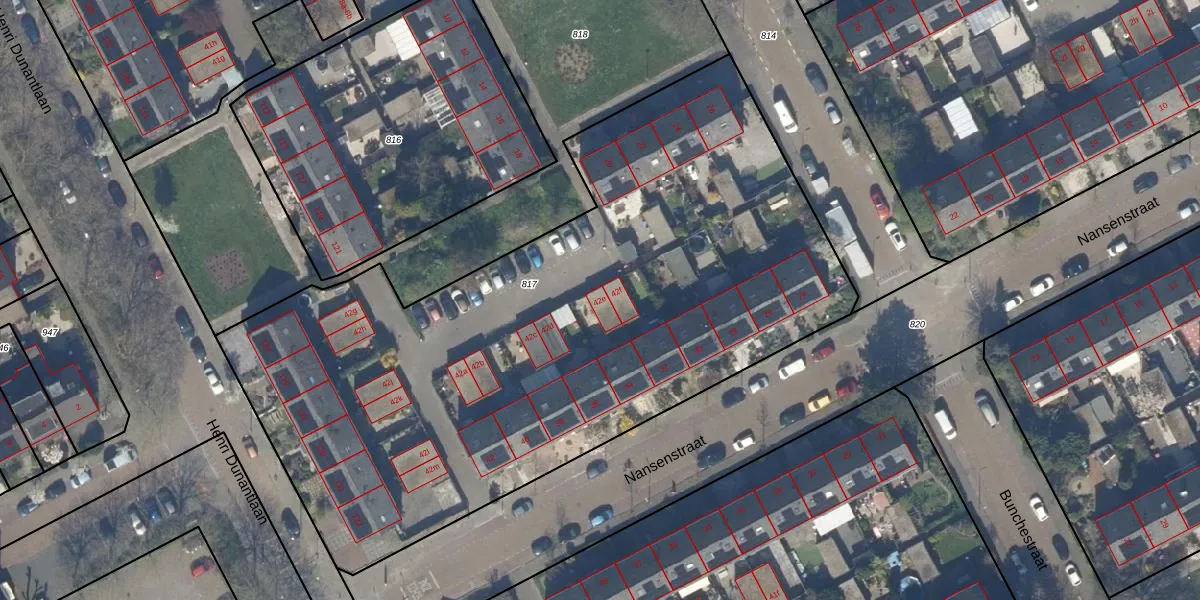 Het perceel waarop Nansenstraat 42-e staat heeft een oppervlakte van 4155 m². Dit is een zeer groot perceel. De perceeloppervlakte wordt geregistreerd door het Kadaster. Gedetailleerde informatie over de maten van dit perceel kunt u vinden in het rapport Kadastrale kaart met maatvoering van Nansenstraat 42-e.