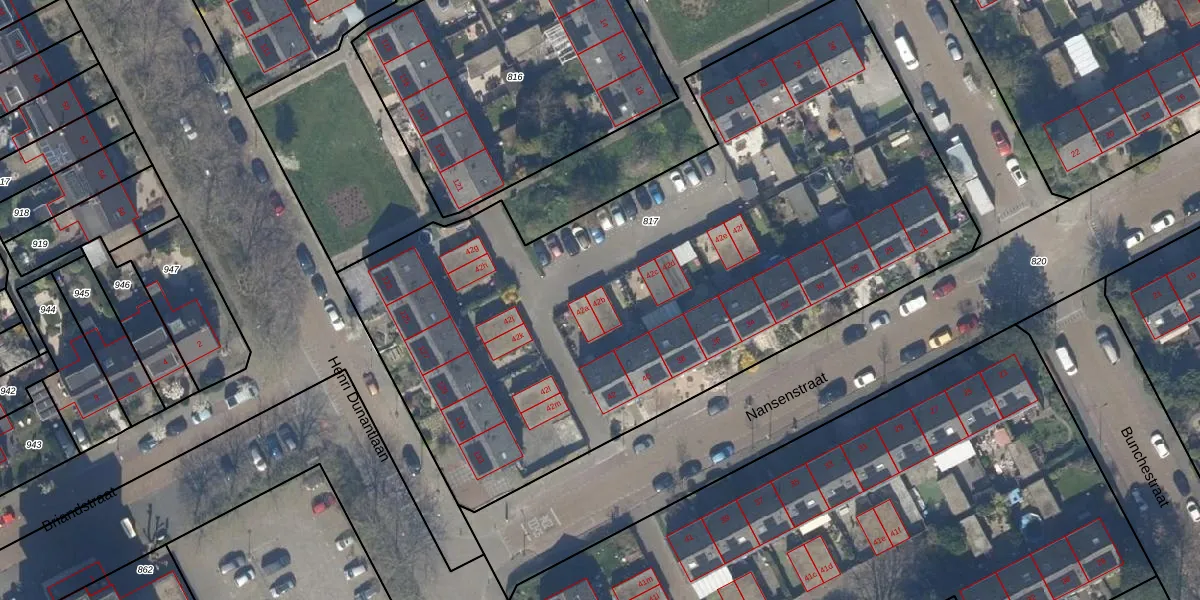 Het perceel waarop Nansenstraat 42-b staat heeft een oppervlakte van 4155 m². Dit is een zeer groot perceel. De perceeloppervlakte wordt geregistreerd door het Kadaster. Gedetailleerde informatie over de maten van dit perceel kunt u vinden in het rapport Kadastrale kaart met maatvoering van Nansenstraat 42-b.