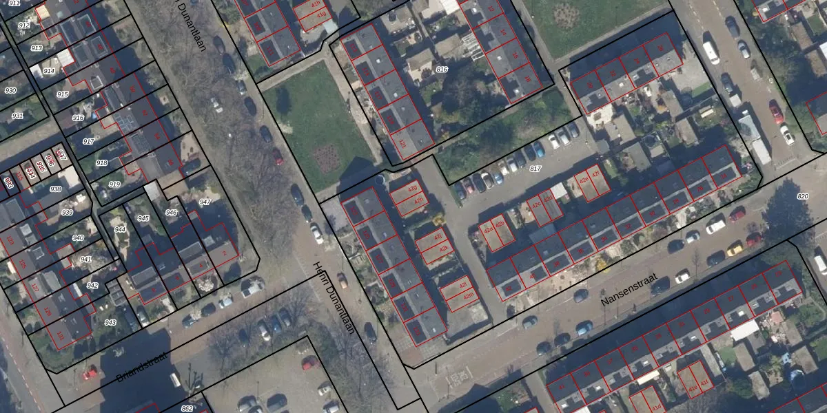 Het perceel waarop Nansenstraat 42-h staat heeft een oppervlakte van 4155 m². Dit is een zeer groot perceel. De perceeloppervlakte wordt geregistreerd door het Kadaster. Gedetailleerde informatie over de maten van dit perceel kunt u vinden in het rapport Kadastrale kaart met maatvoering van Nansenstraat 42-h.