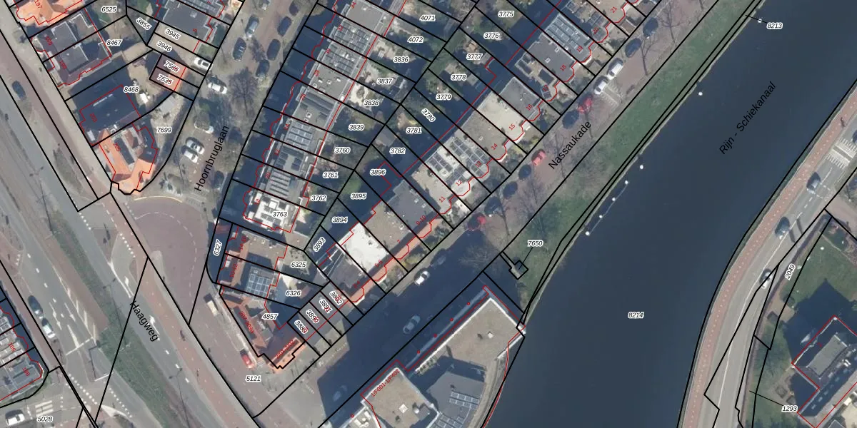 Nassaukade 9 is gelegen op kadastraal perceel RWK01D3896. Deze kadastrale aanduiding is uniek en wordt gebruikt door het Kadaster om eigendomsrechten en andere zakelijke rechten vast te leggen. Het perceel maakt onderdeel uit van de kadastrale gemeente Rijswijk.