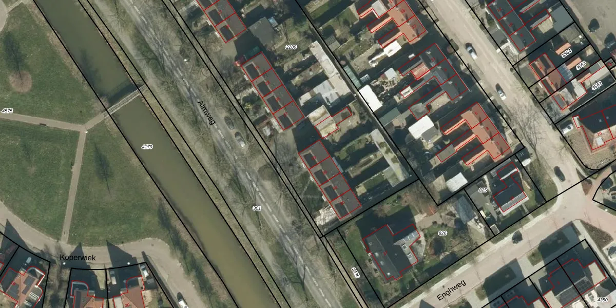 Het perceel waarop Almweg 29 staat heeft een oppervlakte van 3419 m². Dit is een zeer groot perceel. De perceeloppervlakte wordt geregistreerd door het Kadaster. Gedetailleerde informatie over de maten van dit perceel kunt u vinden in het rapport Kadastrale kaart met maatvoering van Almweg 29.
