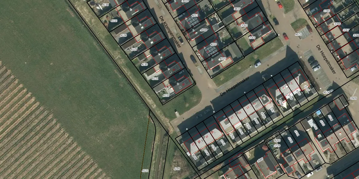 De Klompenmaker 38 is gelegen op kadastraal perceel WDC00H4133. Deze kadastrale aanduiding is uniek en wordt gebruikt door het Kadaster om eigendomsrechten en andere zakelijke rechten vast te leggen. Het perceel maakt onderdeel uit van de kadastrale gemeente Woudrichem.