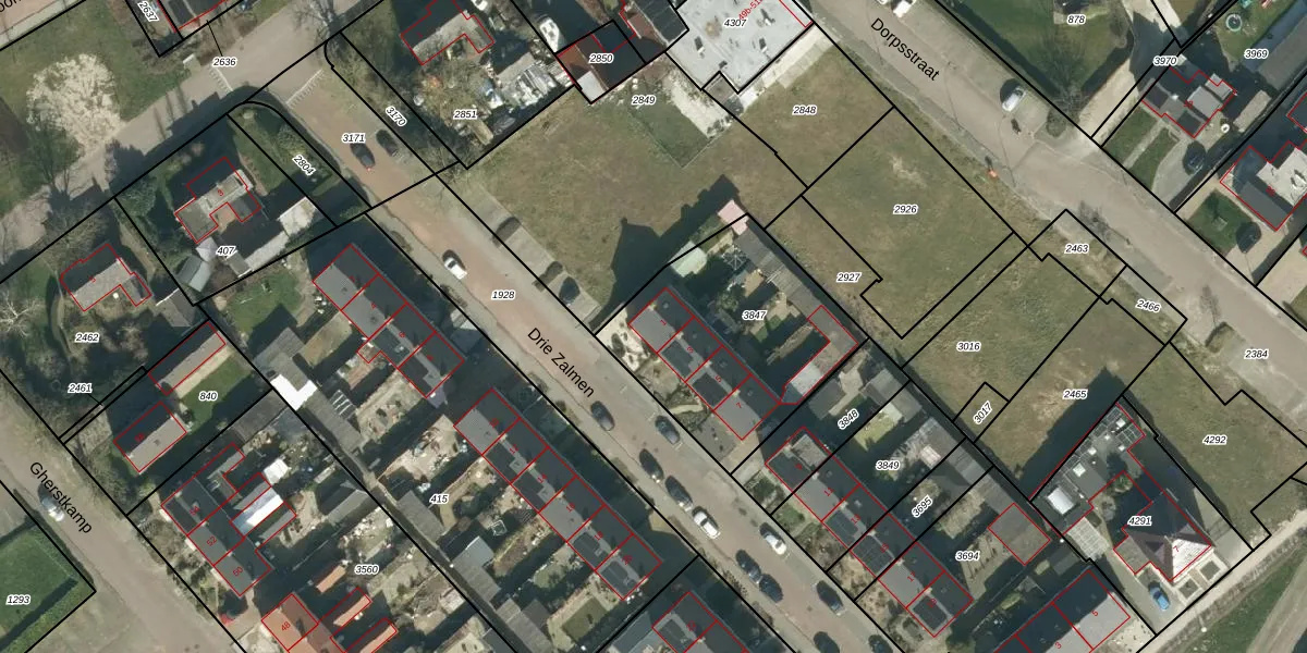 Het perceel waarop Drie Zalmen 1 staat heeft een oppervlakte van 860 m². Dit is een groot perceel. De perceeloppervlakte wordt geregistreerd door het Kadaster. Gedetailleerde informatie over de maten van dit perceel kunt u vinden in het rapport Kadastrale kaart met maatvoering van Drie Zalmen 1.